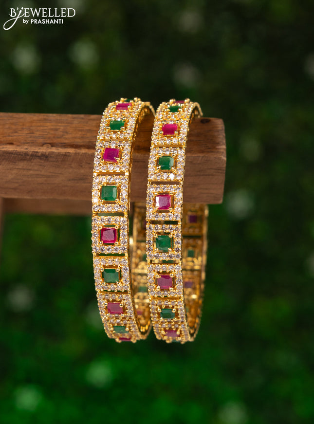 10% OFF Zircon bangle with ruby and cz stones in gold finish