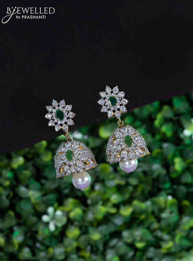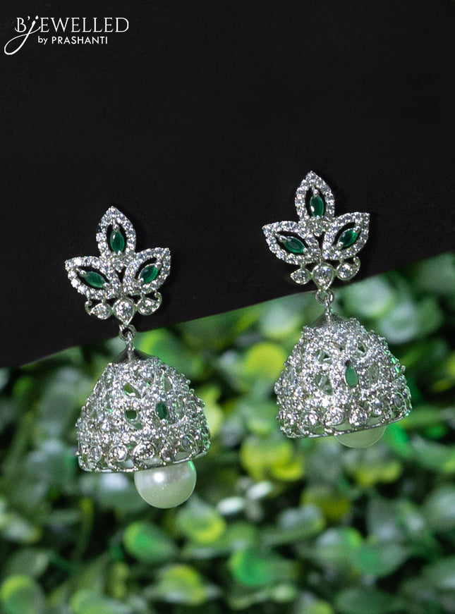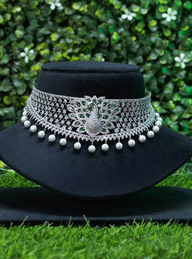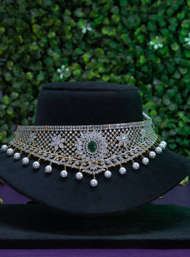 10% OFF Zircon choker floral design with emerald & cz stones and pearl hangings without earrings