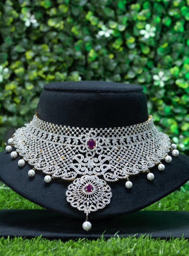 10% OFF Zircon choker with ruby & cz stones and hangings