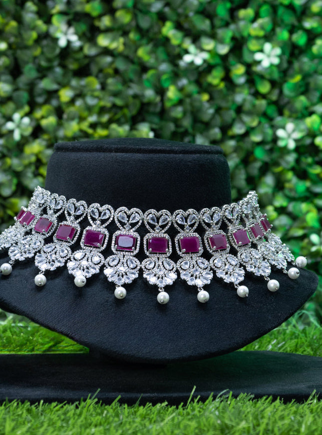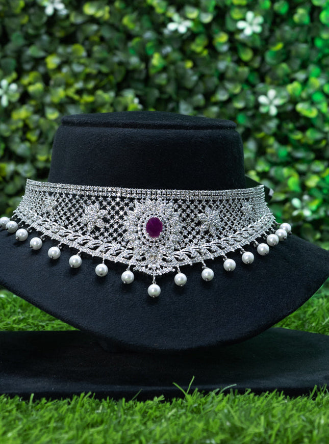 10% OFF Zircon choker with ruby and cz stones