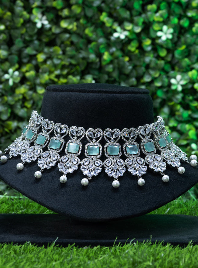 10% OFF Zircon choker with mint green & cz stones and hangings