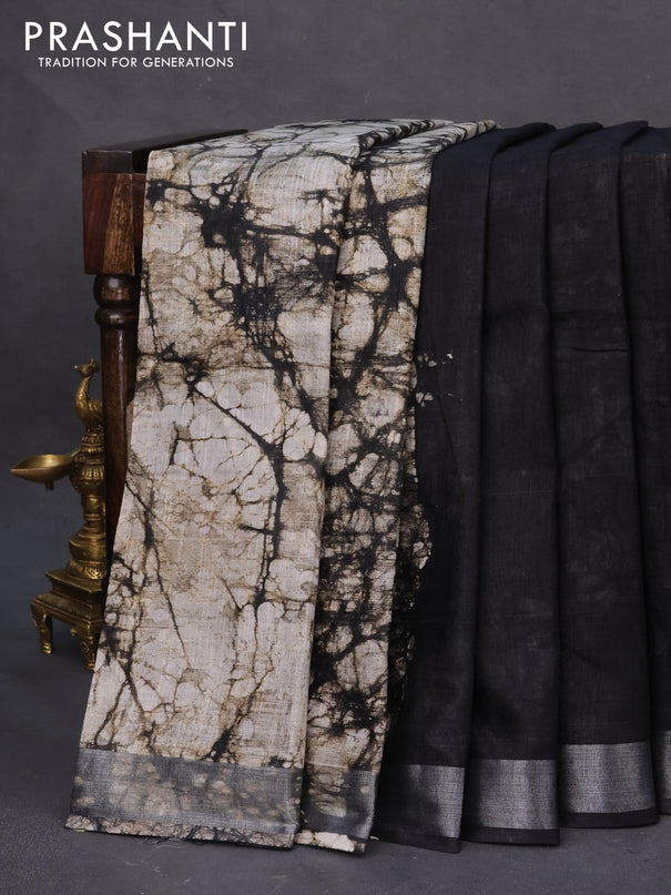 Semi silk cotton saree black and peach pink wit...