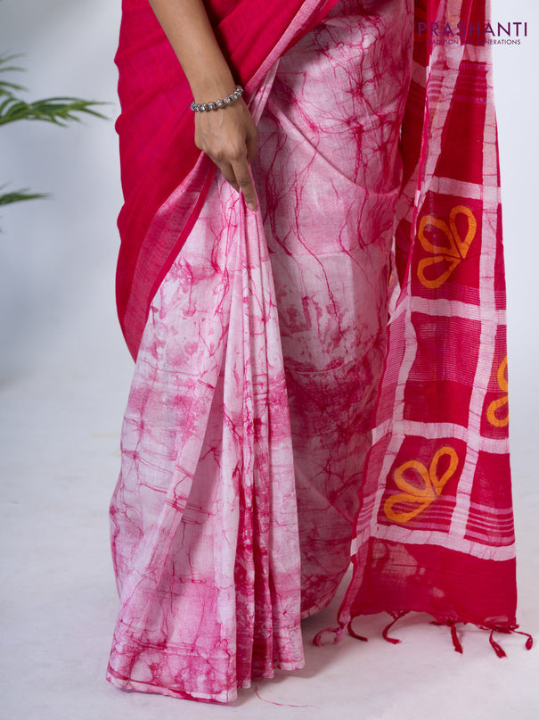 Semi silk cotton saree magenta pink and mild pi...