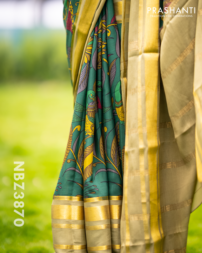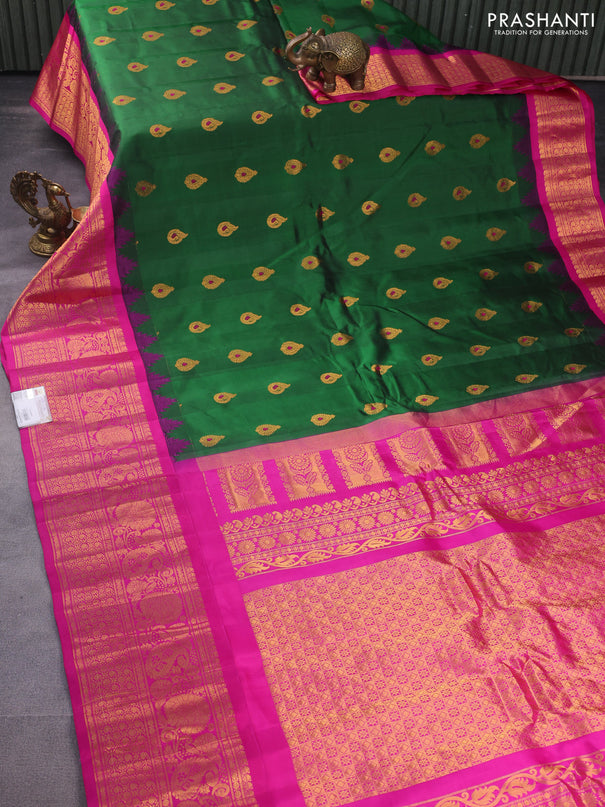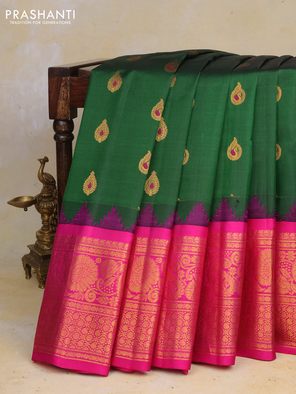 Venkatagiri silk saree dark green with allover ...