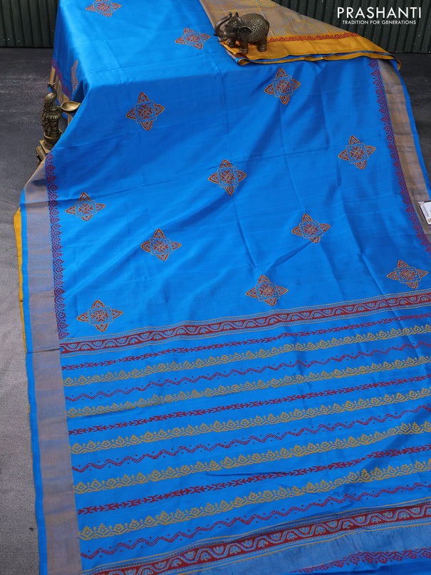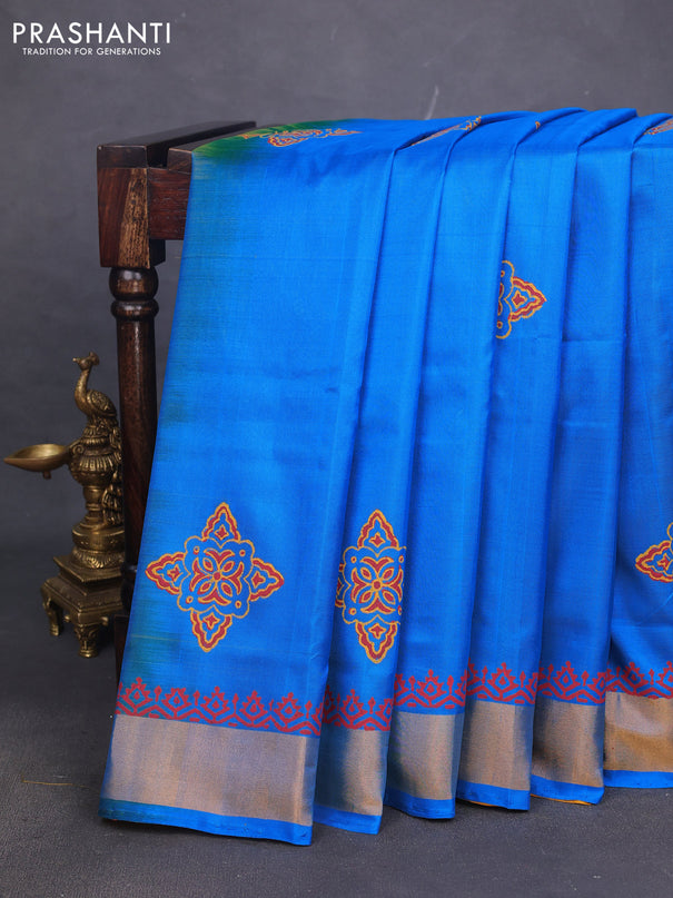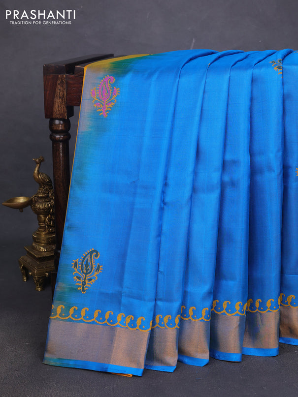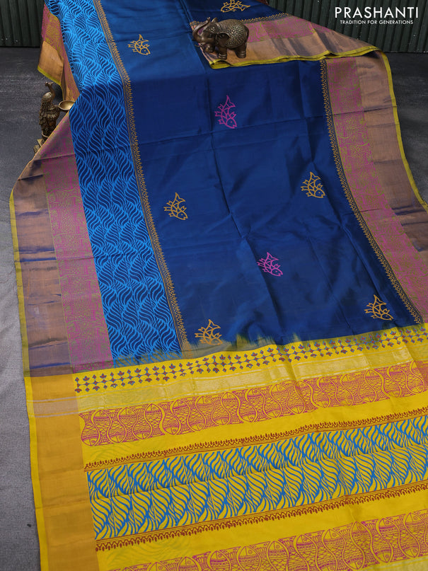 Venkatagiri silk saree teal blue and blue with ...