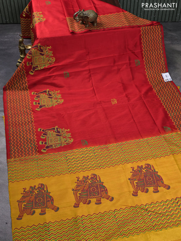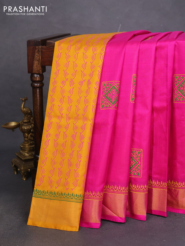 Venkatagiri silk saree dual shade of mustard an...