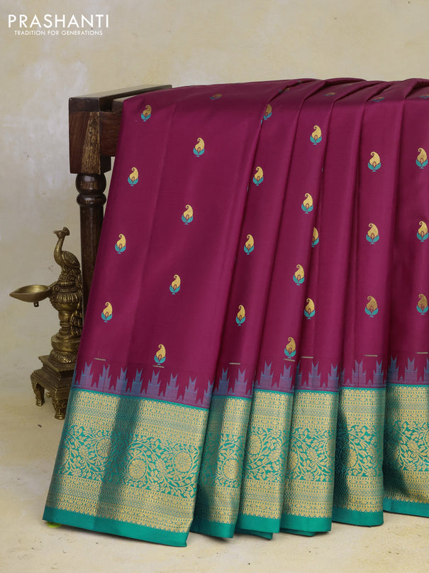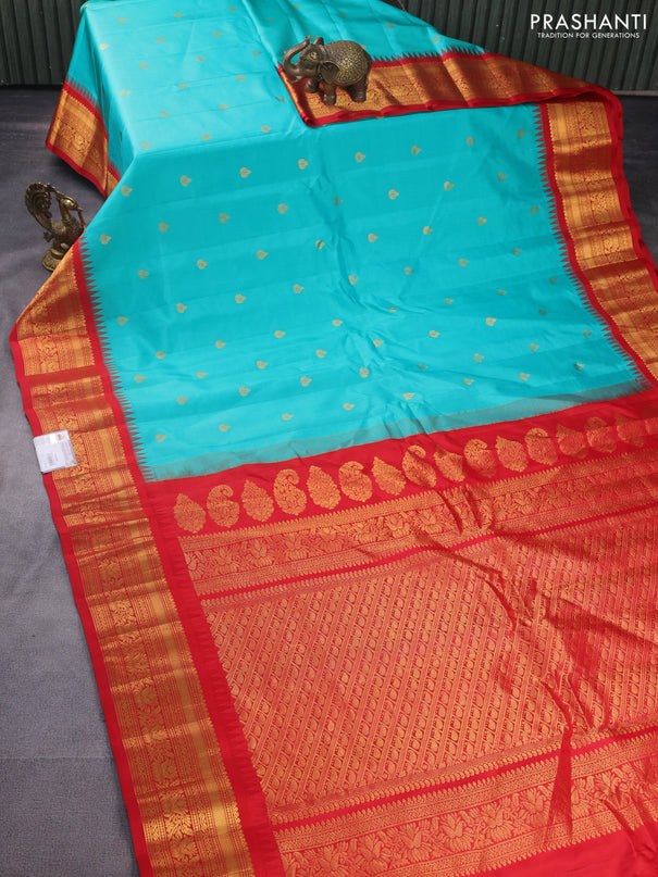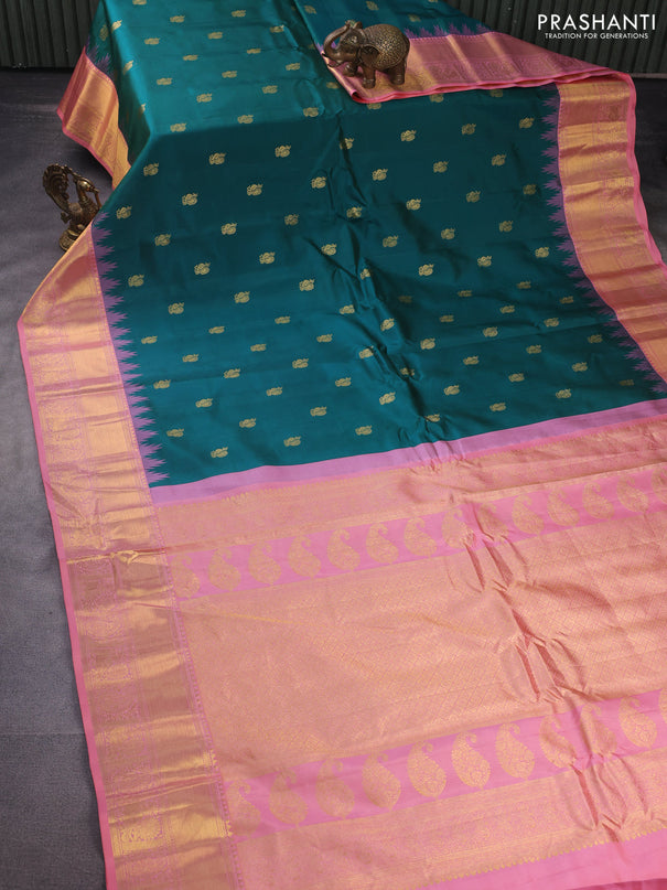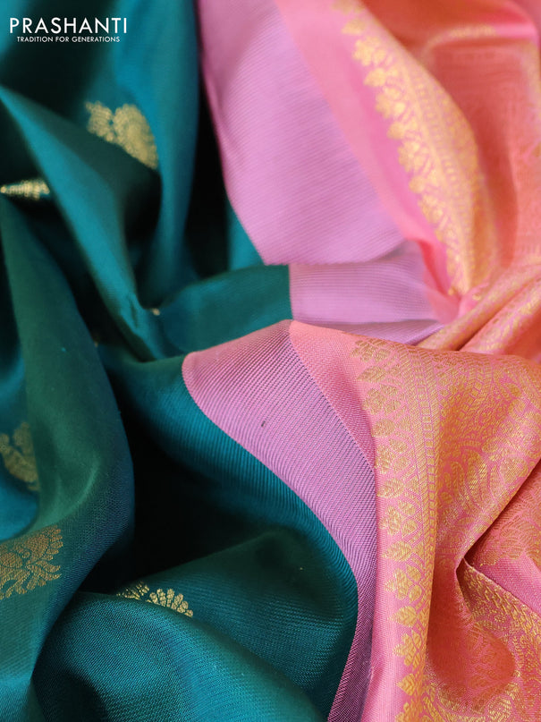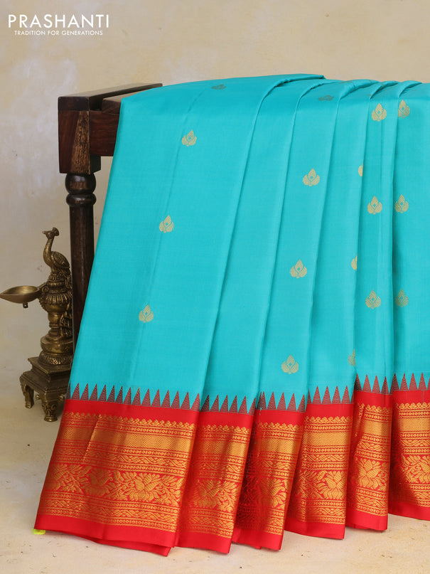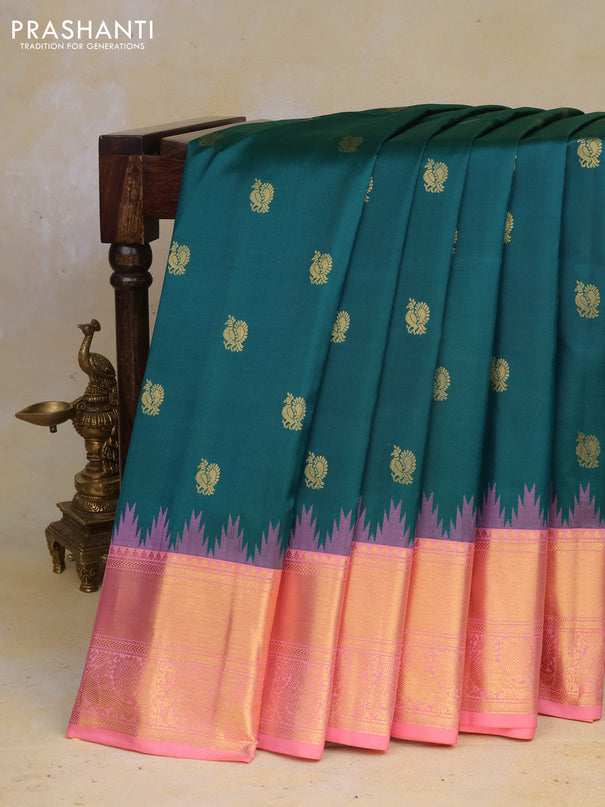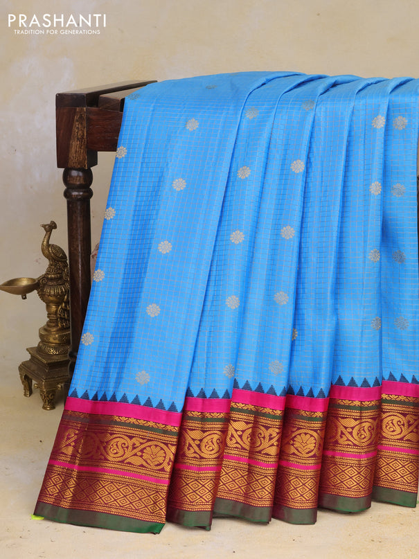 Venkatagiri silk saree teal green and cs blue w...