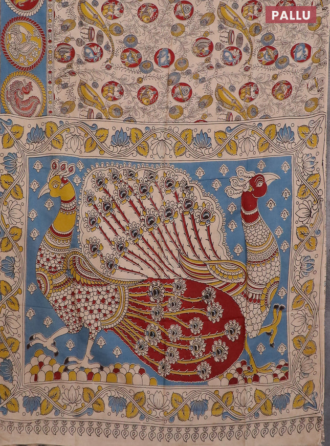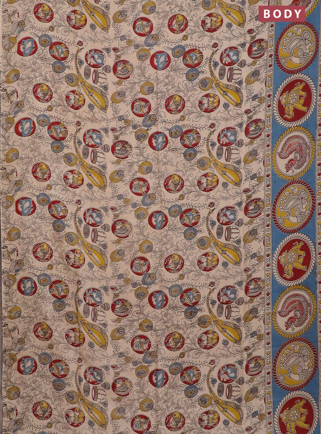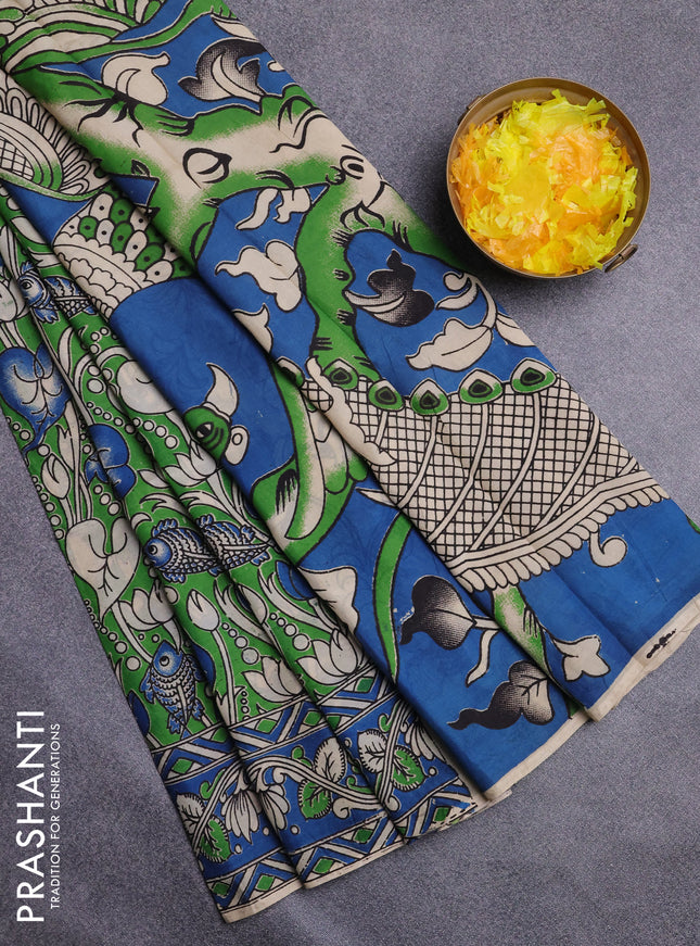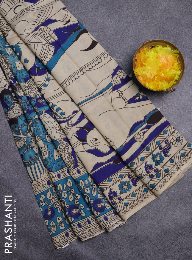 10% OFF Kalamkari semi silk saree beige and blue with allover prints and zari woven border Kalamkari semi silk saree beige and blue with allover prints and zari woven border Kalamkari semi silk saree beige and blue with allover prints and zari woven border Kalamkari semi silk saree beige and blue with allover prints and zari woven border