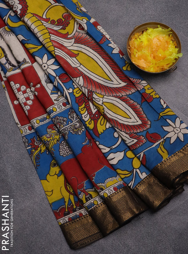 10% OFF Kalamkari semi silk saree black and blue with allover prints and zari woven border Kalamkari semi silk saree black and blue with allover prints and zari woven border Kalamkari semi silk saree black and blue with allover prints and zari woven border Kalamkari semi silk saree black and blue with allover prints and zari woven border