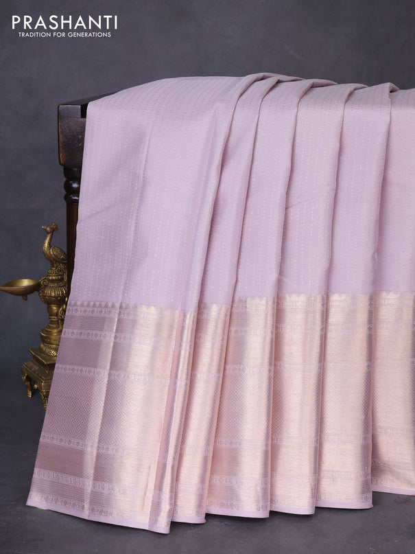 10% OFF Pure kanchipuram silk saree lavender and green with allover silver & gold zari weaves in borderless style Pure kanchipuram silk saree lavender and green with allover silver & gold zari weaves in borderless style Pure kanchipuram silk saree lavender and green with allover silver & gold zari weaves in borderless style Pure kanchipuram silk saree lavender and green with allover silver & gold zari weaves in borderless style