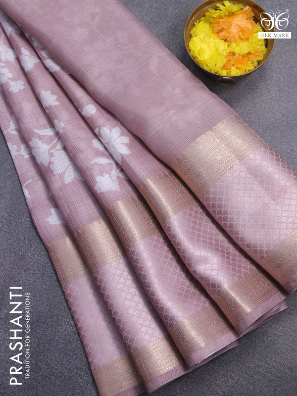 10% OFF Kota saree sandal and pale orange with allover floral prints & pita work and lace work border Kota saree sandal and pale orange with allover floral prints & pita work and lace work border Kota saree sandal and pale orange with allover floral prints & pita work and lace work border