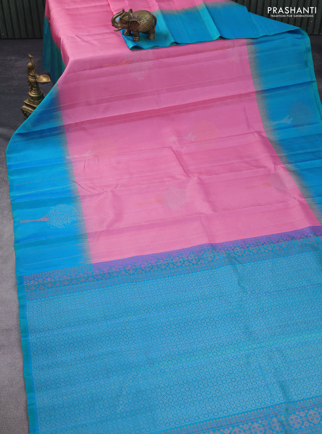 Pure soft silk saree blue with zari woven butta...