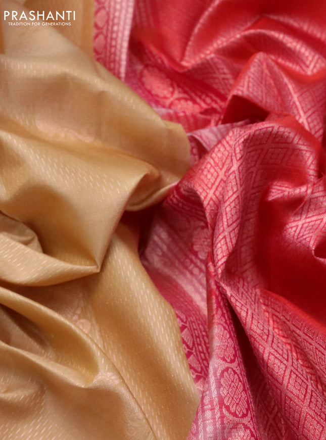 Pure soft silk saree beige and dual shade of pi...