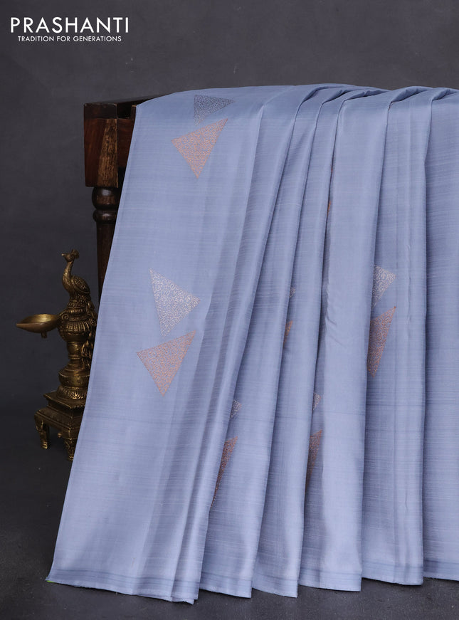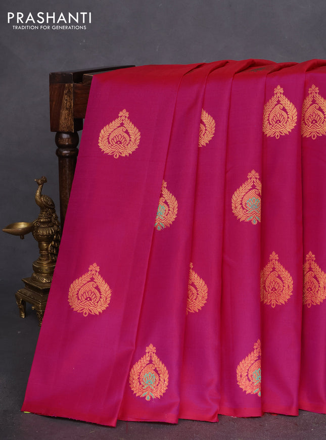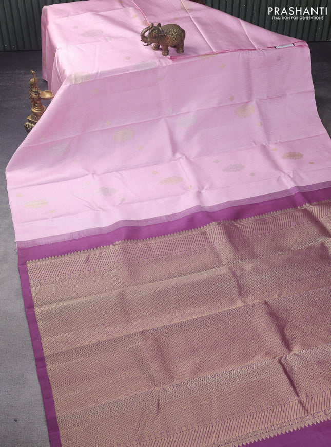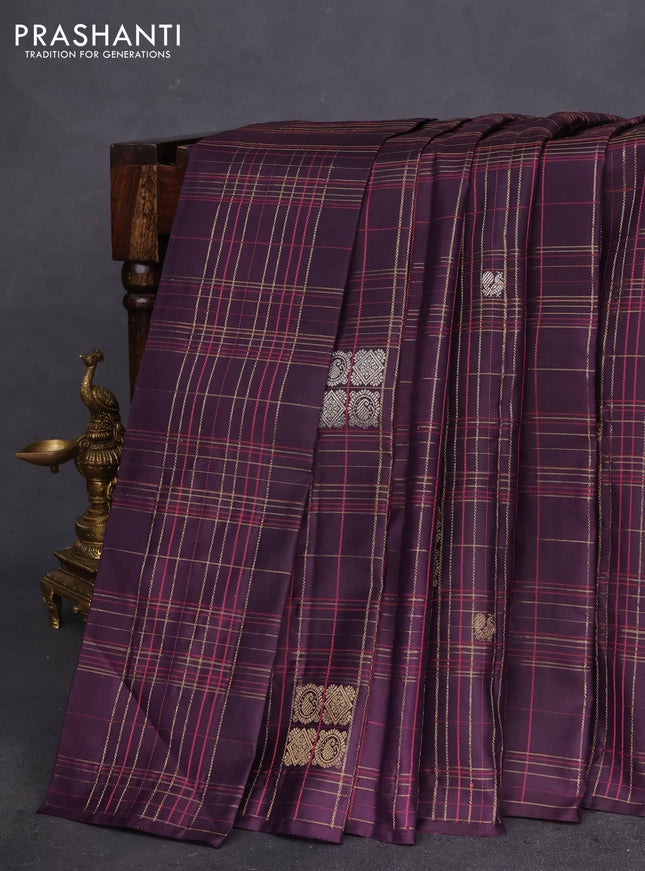Pure kanchipuram silk saree deep jamun and peac...
