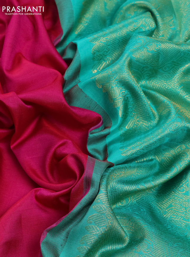 Pure kanchipuram silk saree green and wine shad...