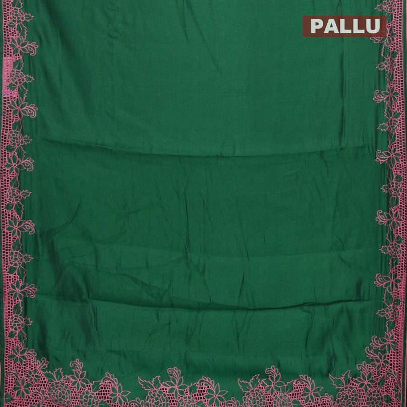 Semi satin silk saree green and with embroidery...