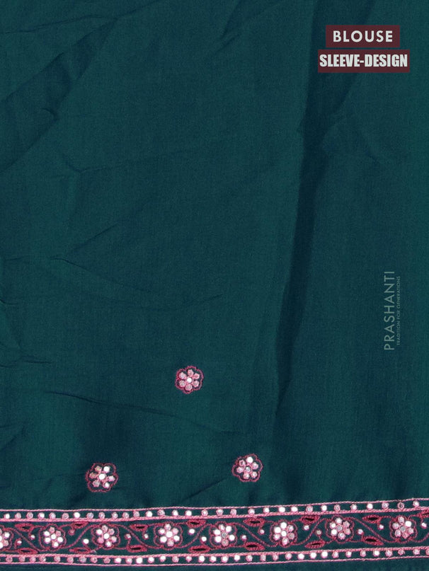 Semi satin silk saree peacock blue and with mir...