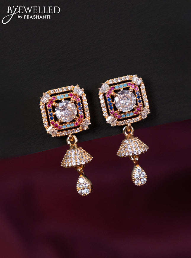 20% OFF Rose gold earrings with multicolor & cz stones and  hanging type