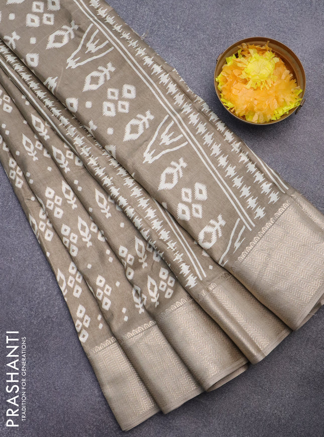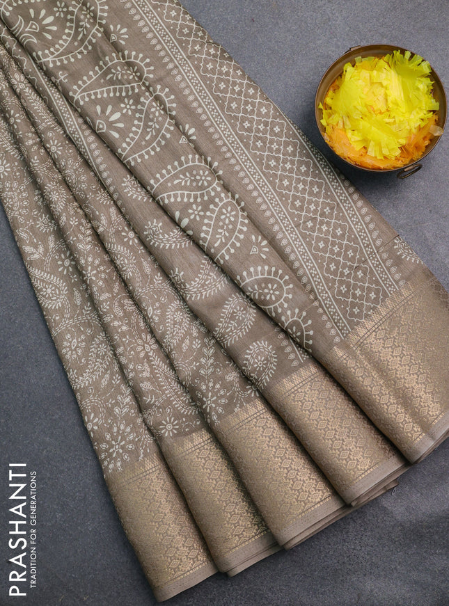 Semi dola saree dark green with allover prints ...