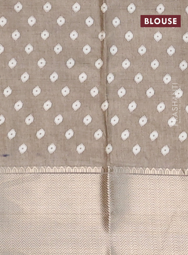 Semi dola saree cream and green with allover za...