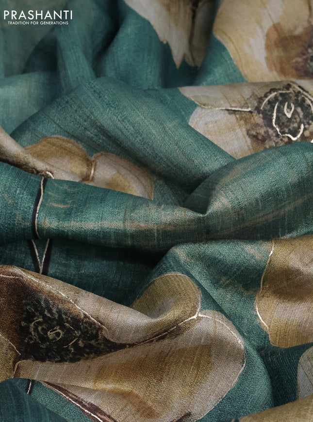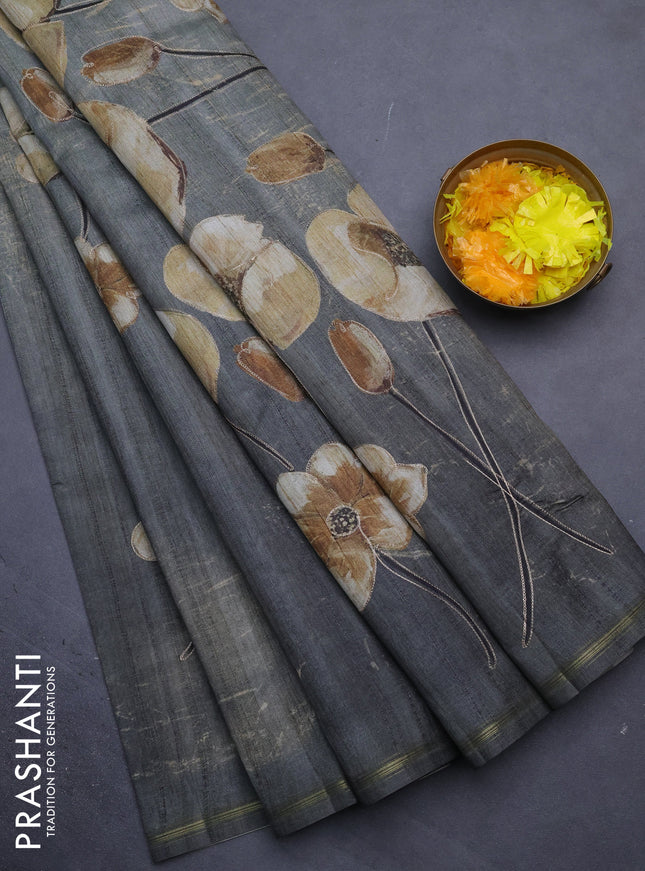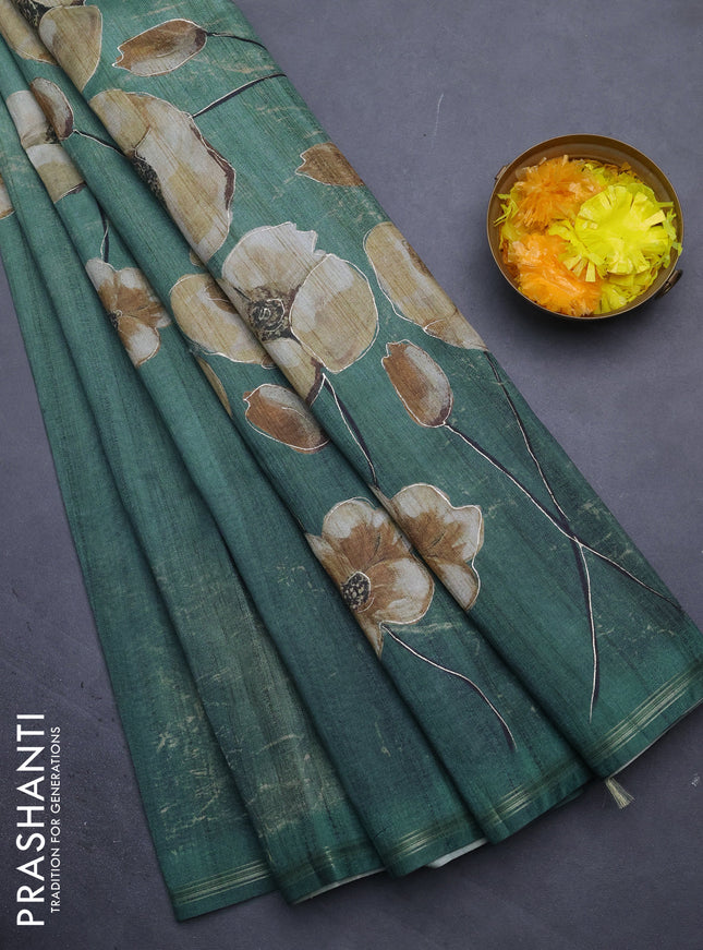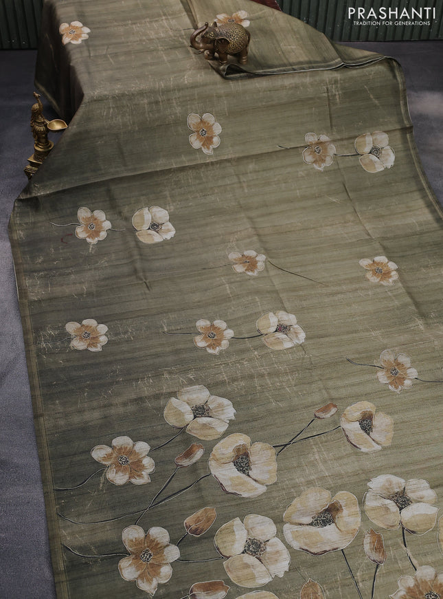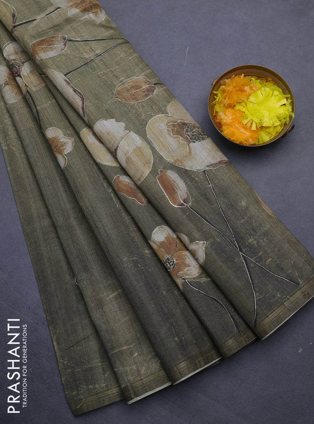 10% OFF Semi tussar saree military green with floral prints and simple zari border Semi tussar saree military green with floral prints and simple zari border Semi tussar saree military green with floral prints and simple zari border Semi tussar saree military green with floral prints and simple zari border