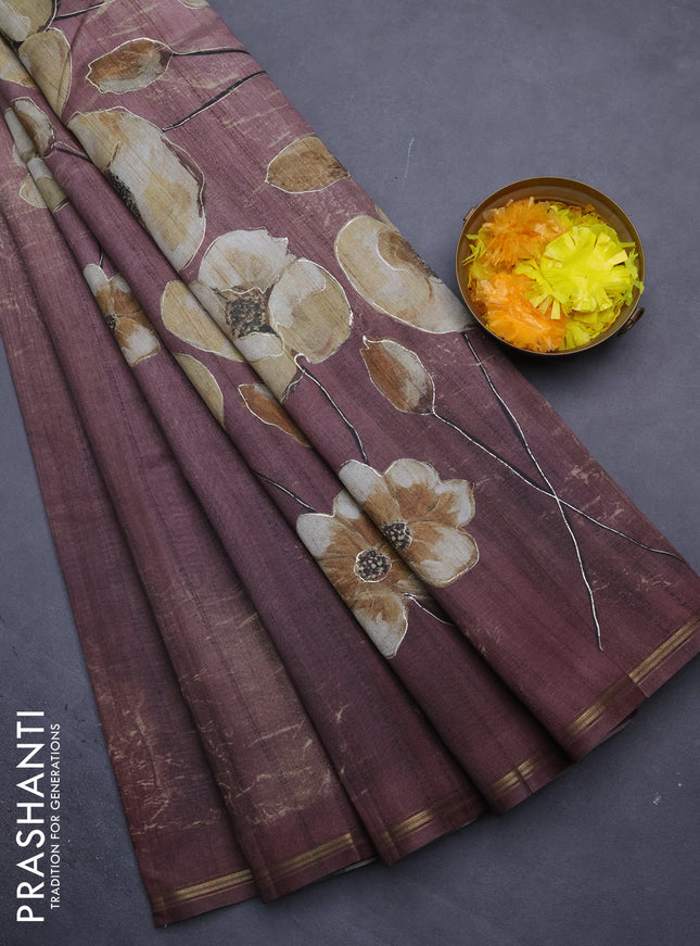 10% OFF Semi tussar saree brown and beige with plain body and kalamkari printed pallu Semi tussar saree brown and beige with plain body and kalamkari printed pallu Semi tussar saree brown and beige with plain body and kalamkari printed pallu