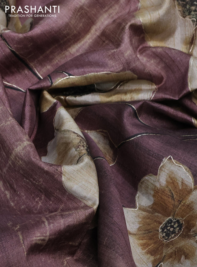 10% OFF Semi tussar saree multi colour and wine shade beige with plain body and kalamkari printed pallu Semi tussar saree multi colour and wine shade beige with plain body and kalamkari printed pallu Semi tussar saree multi colour and wine shade beige with plain body and kalamkari printed pallu