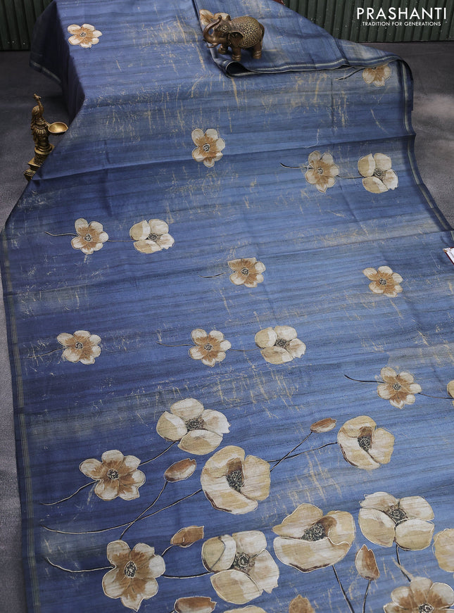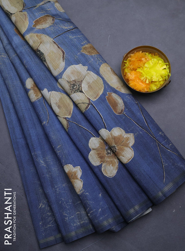 10% OFF Semi tussar saree cs blue and pastel brown with allover shibori prints and kalamkari pallu & zari border Semi tussar saree cs blue and pastel brown with allover shibori prints and kalamkari pallu & zari border Semi tussar saree cs blue and pastel brown with allover shibori prints and kalamkari pallu & zari border