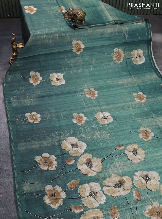 10% OFF Semi tussar saree sap green shade with floral prints and simple zari border Semi tussar saree sap green shade with floral prints and simple zari border Semi tussar saree sap green shade with floral prints and simple zari border Semi tussar saree sap green shade with floral prints and simple zari border