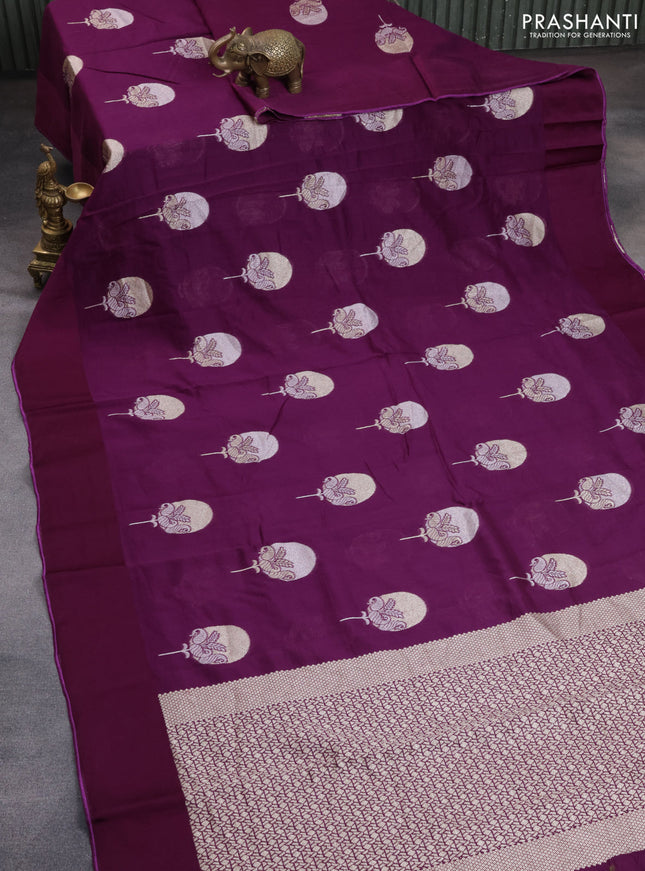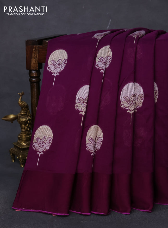 10% OFF Silk cotton saree purple and cs blue with allover vairosi weaves & buttas and elephant zari woven border Silk cotton saree purple and cs blue with allover vairosi weaves & buttas and elephant zari woven border Silk cotton saree purple and cs blue with allover vairosi weaves & buttas and elephant zari woven border