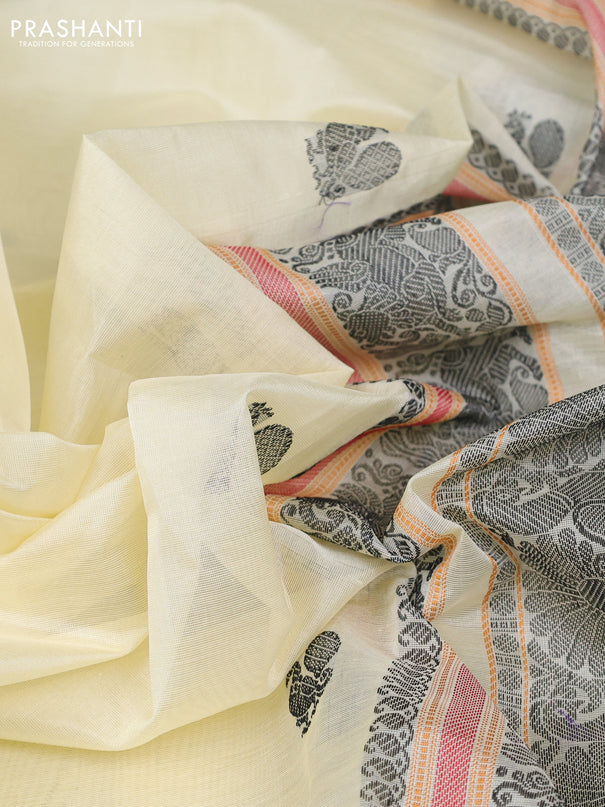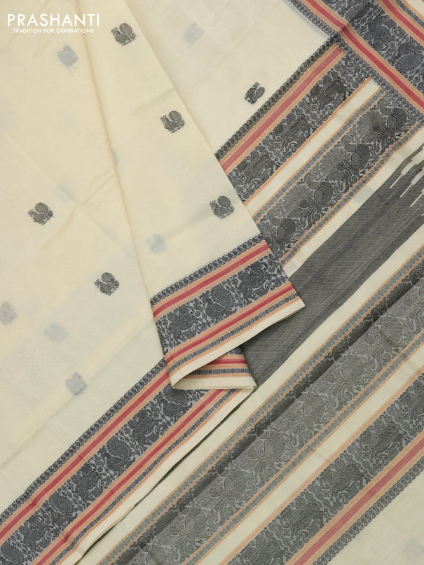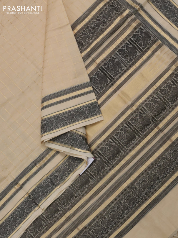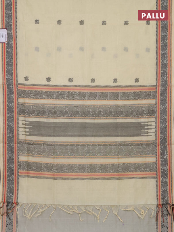 Kuppadam silk cotton saree cream and black with...