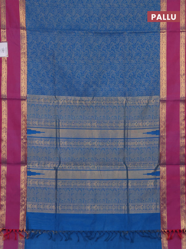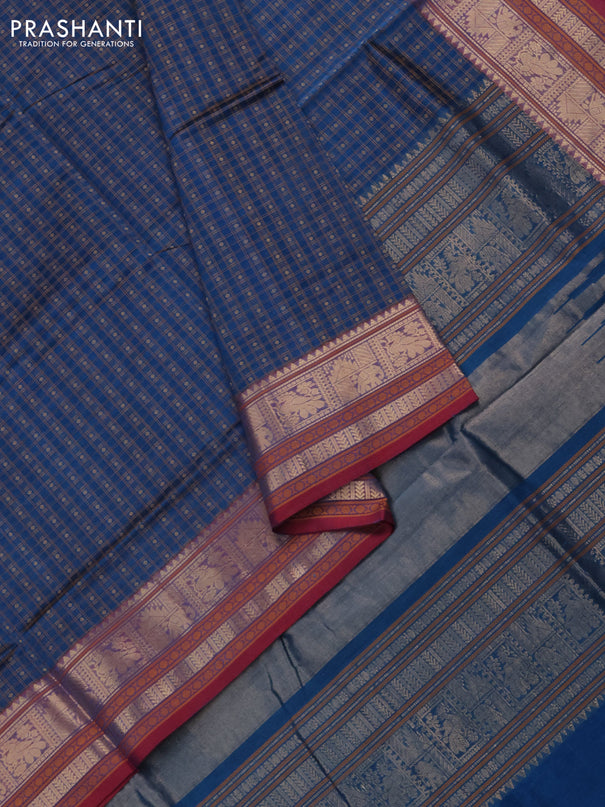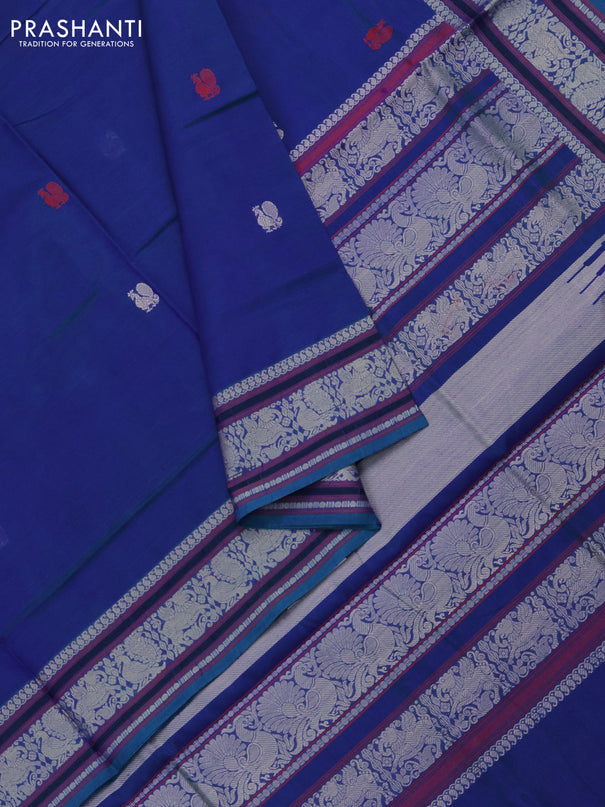Kuppadam silk cotton saree teal blue and black ...