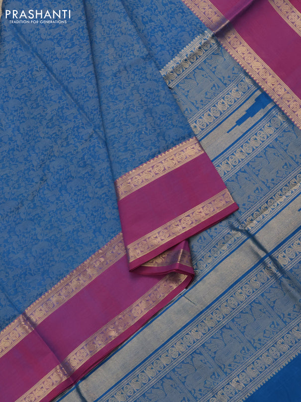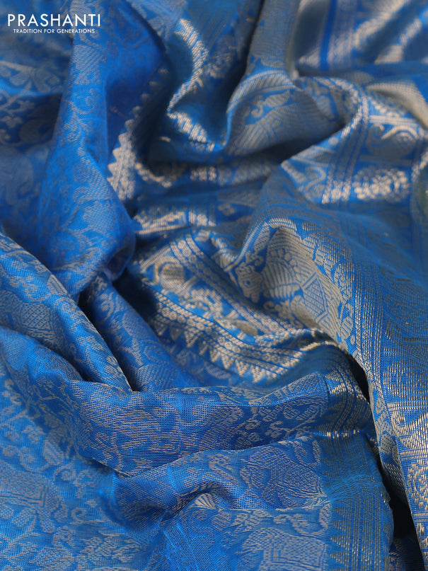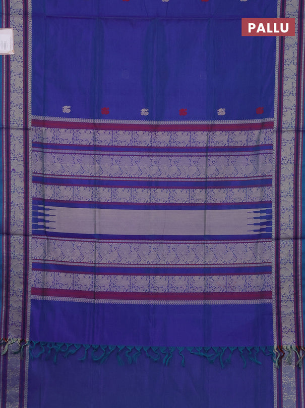 Kuppadam silk cotton saree peacock blue and lim...