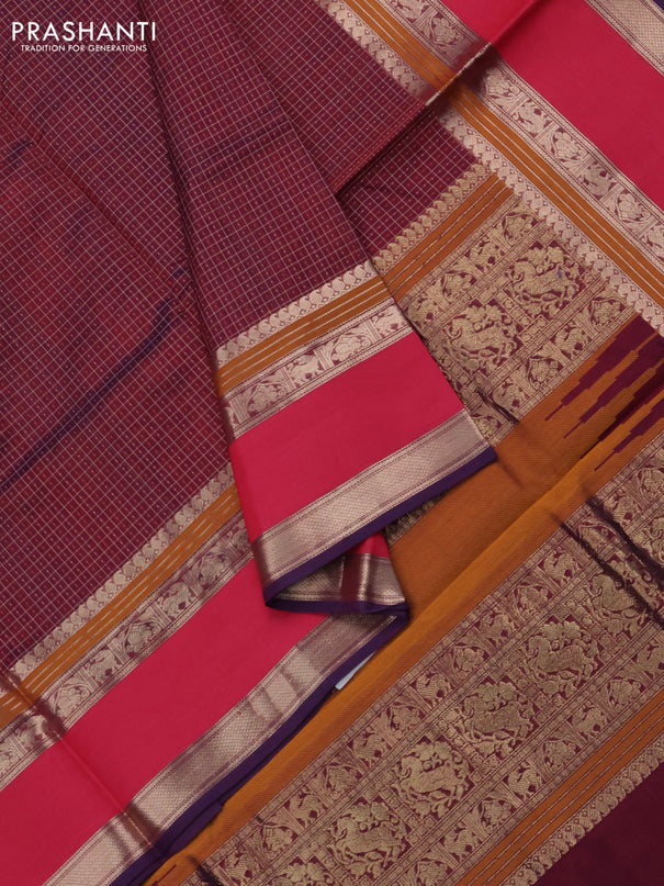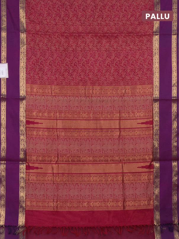 Kuppadam silk cotton saree dark pink and violet...