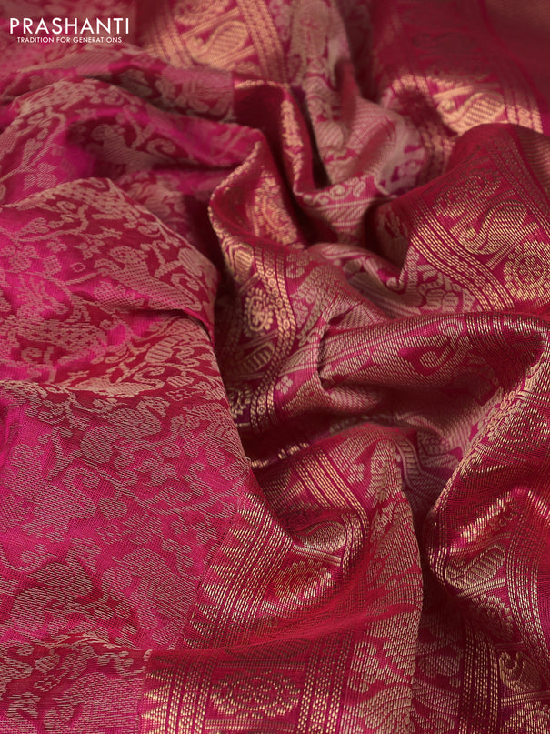 Kuppadam silk cotton saree dark pink and lime y...