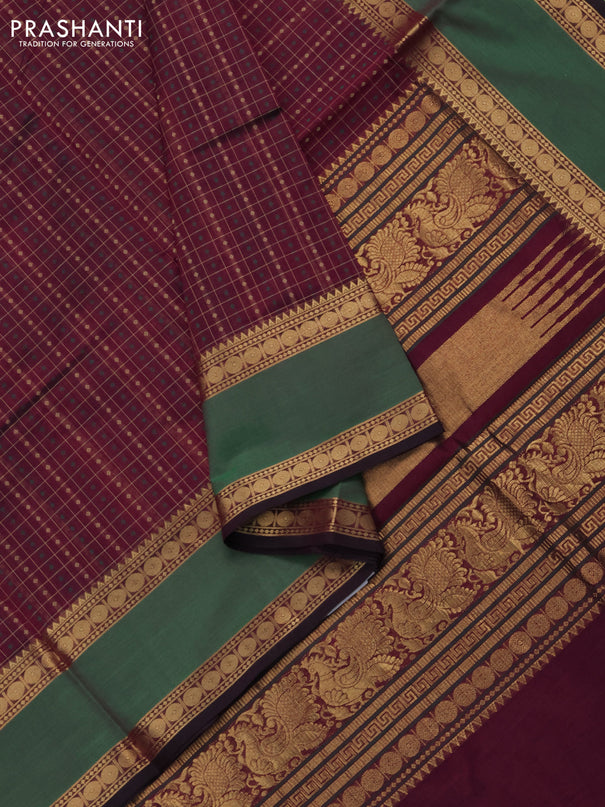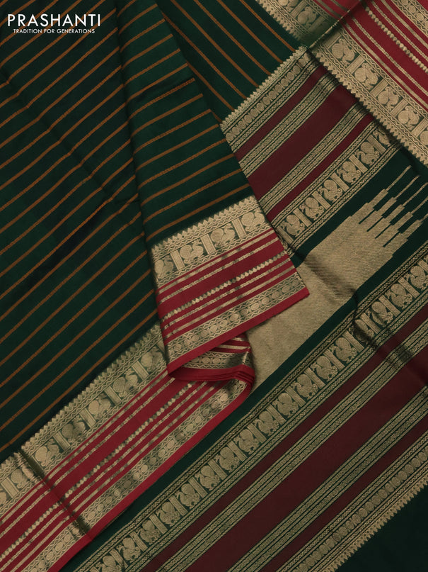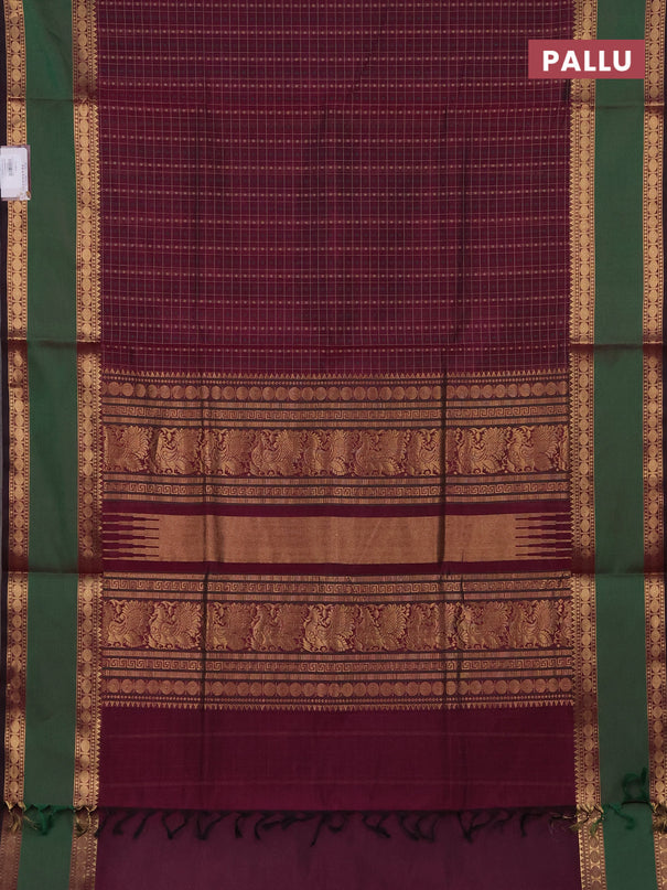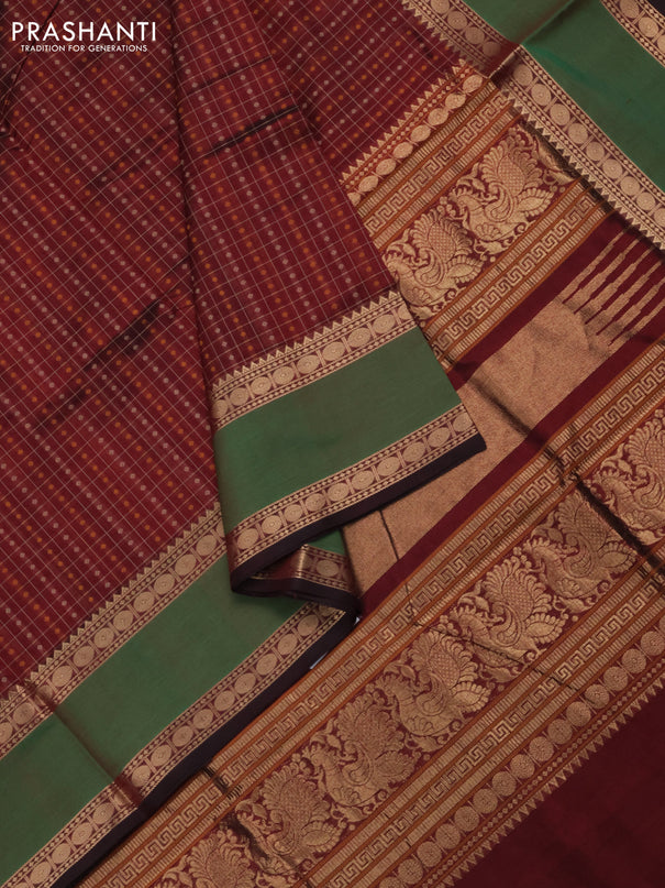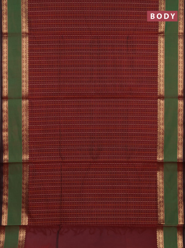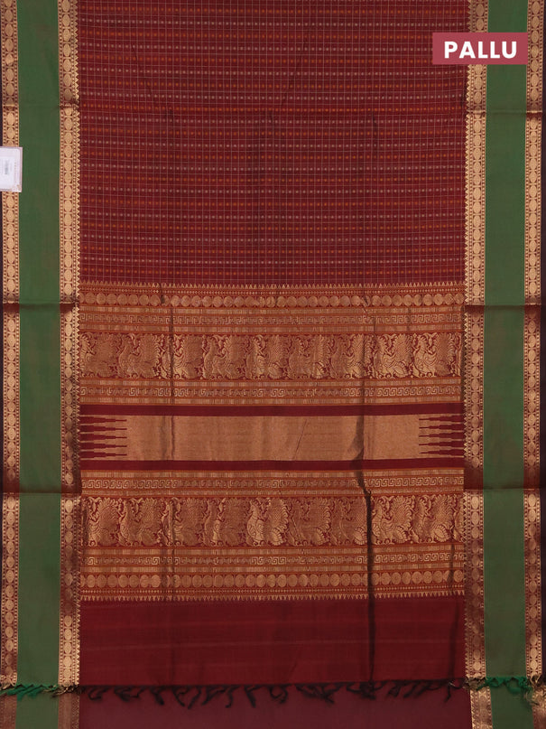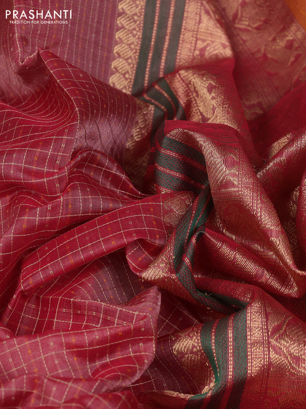 Kuppadam silk cotton saree dark green and red w...