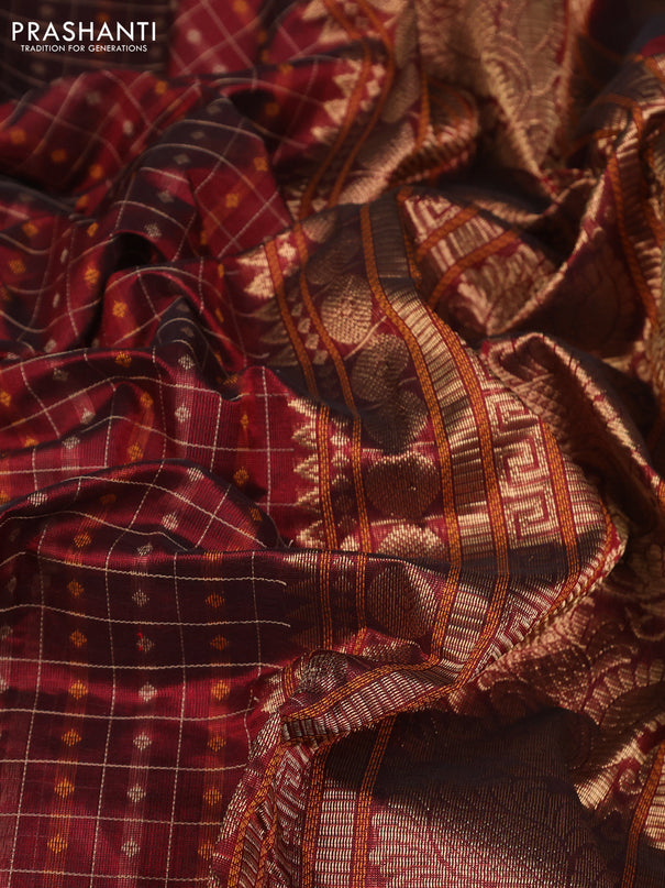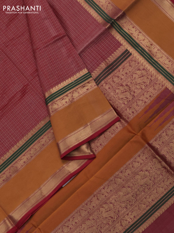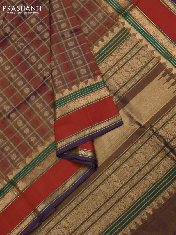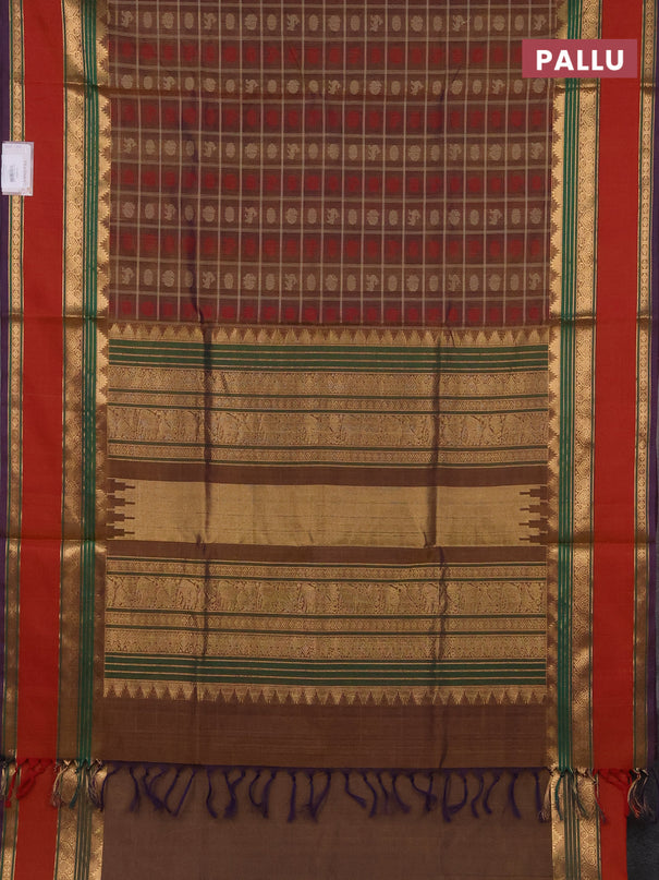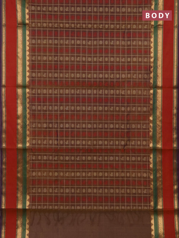 Kuppadam silk cotton saree sandal and red with ...