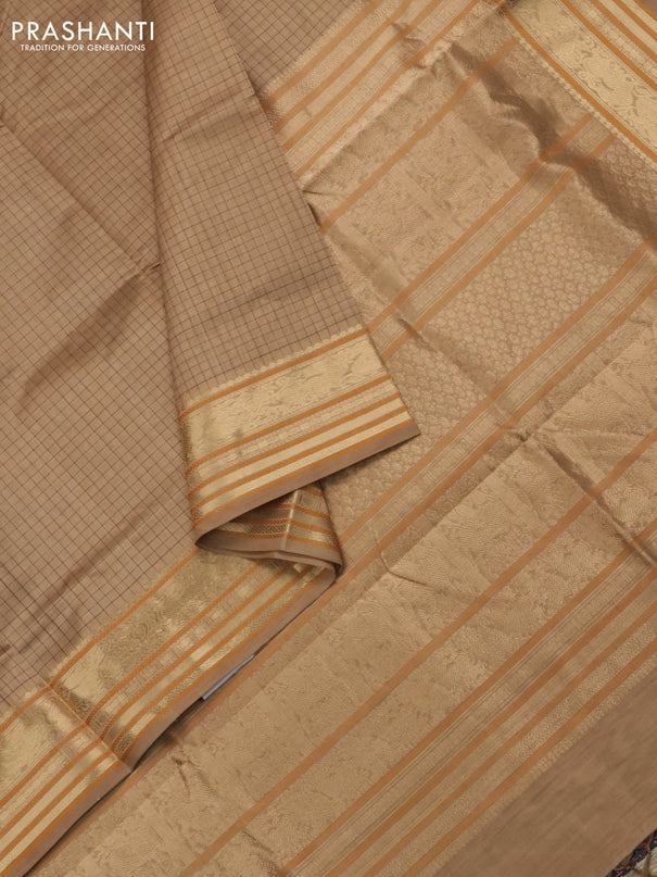 Kuppadam silk cotton saree beige and purple wit...