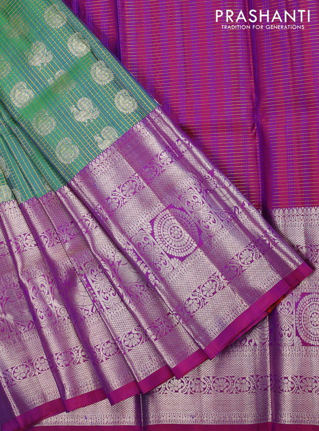 Pure kanchipuram tissue silk lehenga teal blue ...
