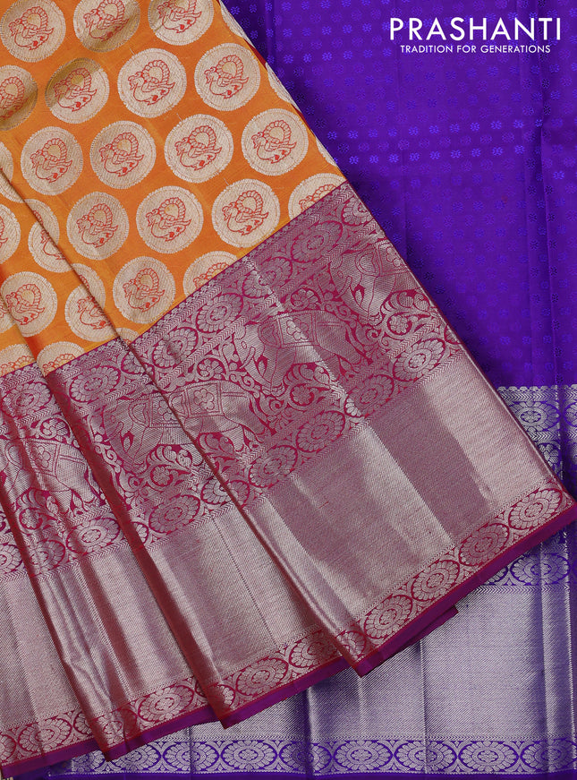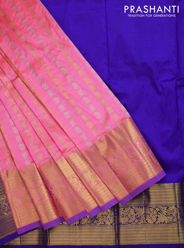 Pure kanchipuram silk lehenga deep jamun and pi...