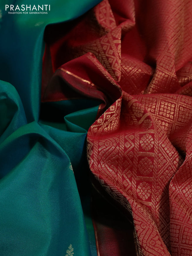 10% OFF Pure kanchipuram silk saree teal green and dual shade of bluish maroon with paisley zari woven buttas and rich zari woven border Pure kanchipuram silk saree teal green and dual shade of bluish maroon with paisley zari woven buttas and rich zari woven border Pure kanchipuram silk saree teal green and dual shade of bluish maroon with paisley zari woven buttas and rich zari woven border Pure kanchipuram silk saree teal green and dual shade of bluish maroon with paisley zari woven buttas and rich zari woven border