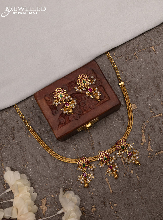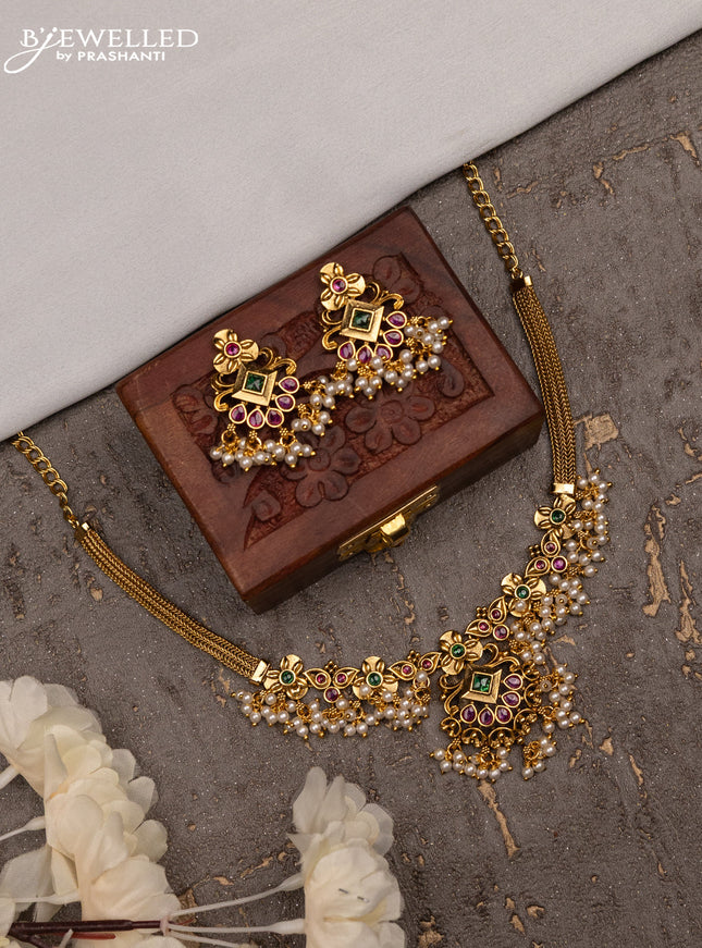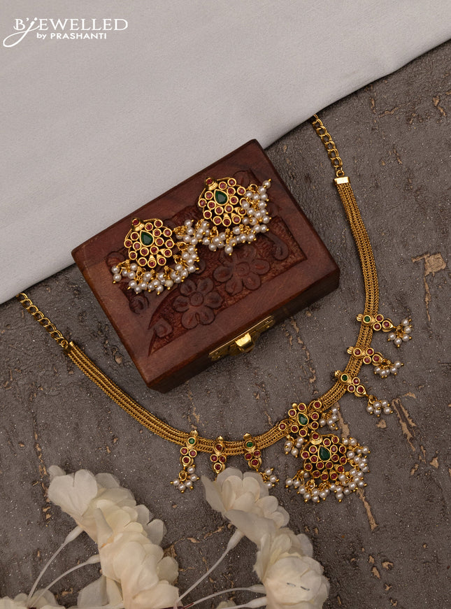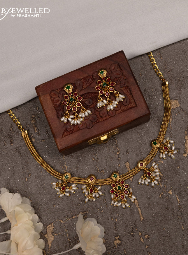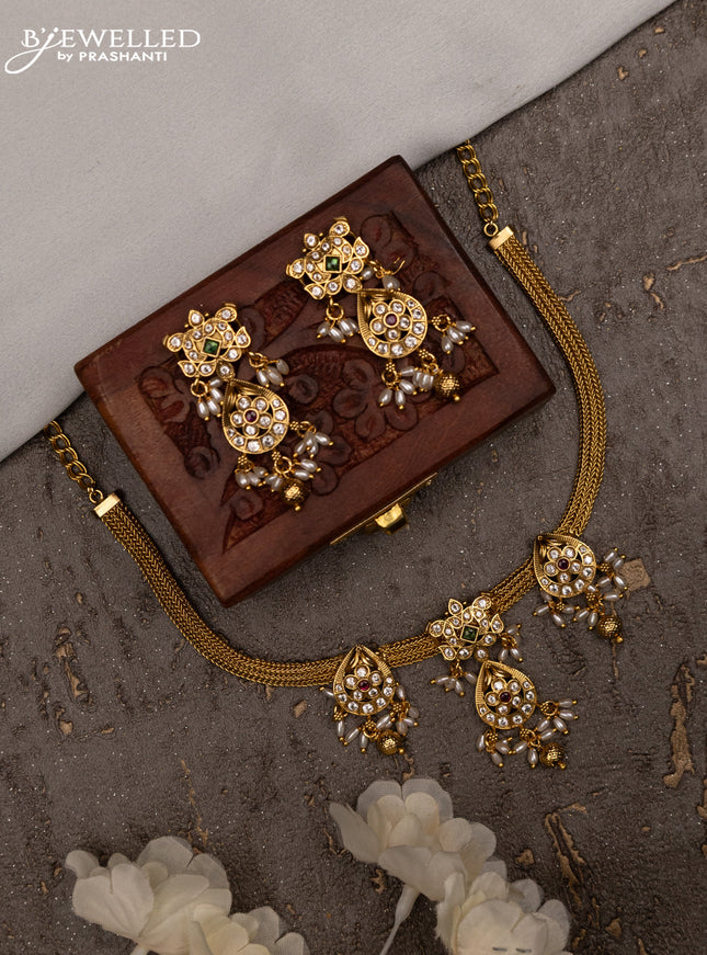 10% OFF Antique attigai necklace with kemp stones and pearl hangings without earrings