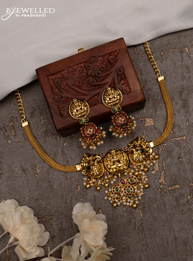 10% OFF Antique attigai necklace lakshmi pendant with kemp stones and pearl & golden beads hangings Antique attigai necklace lakshmi pendant with kemp stones and pearl & golden beads hangings
