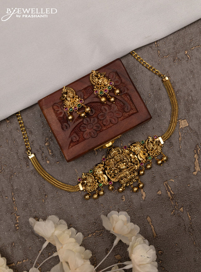 10% OFF Antique attigai necklace lakshmi design with kemp stones and golden beads hanging Antique attigai necklace lakshmi design with kemp stones and golden beads hanging