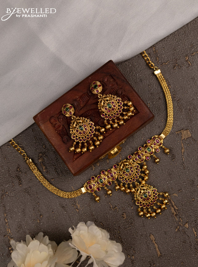 10% OFF Antique attigai necklace with kemp stones and golden beads hanging without earrings