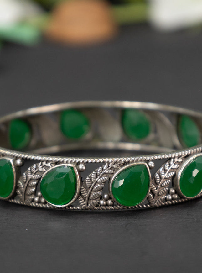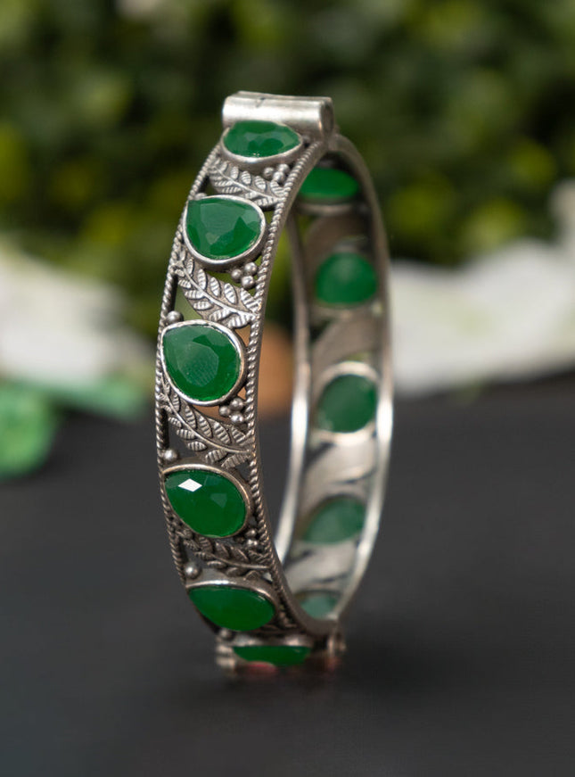 zircon bangle leaf design with cz stones