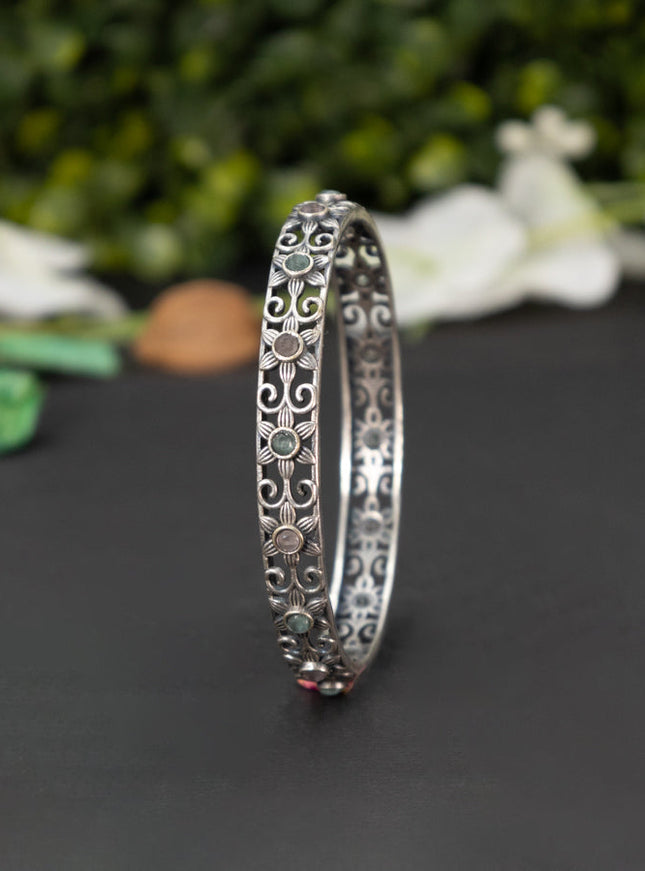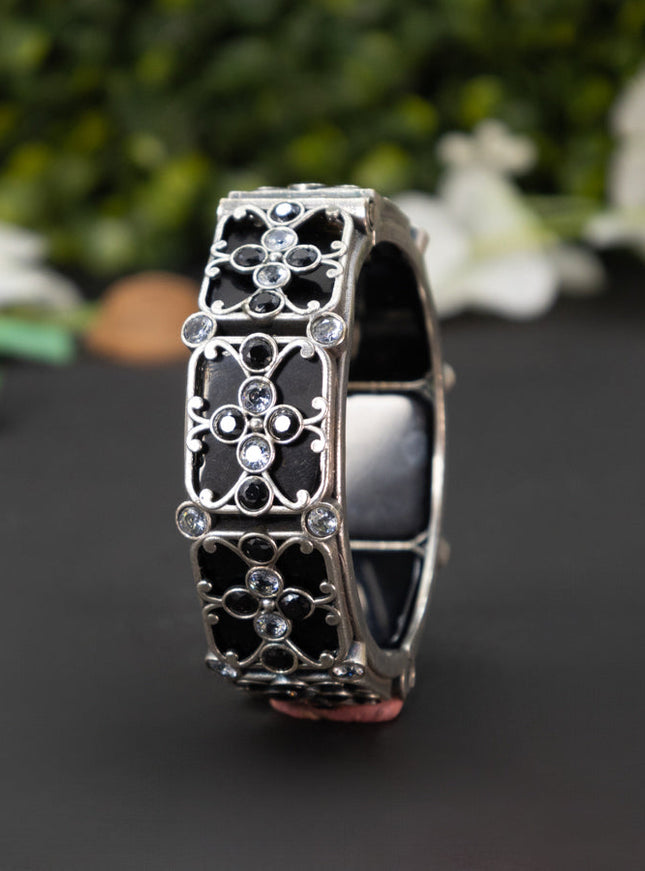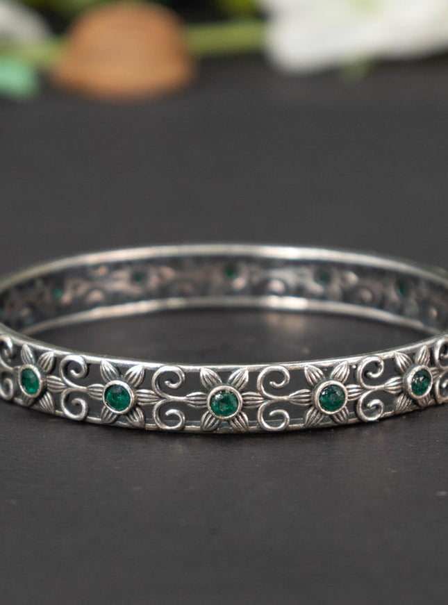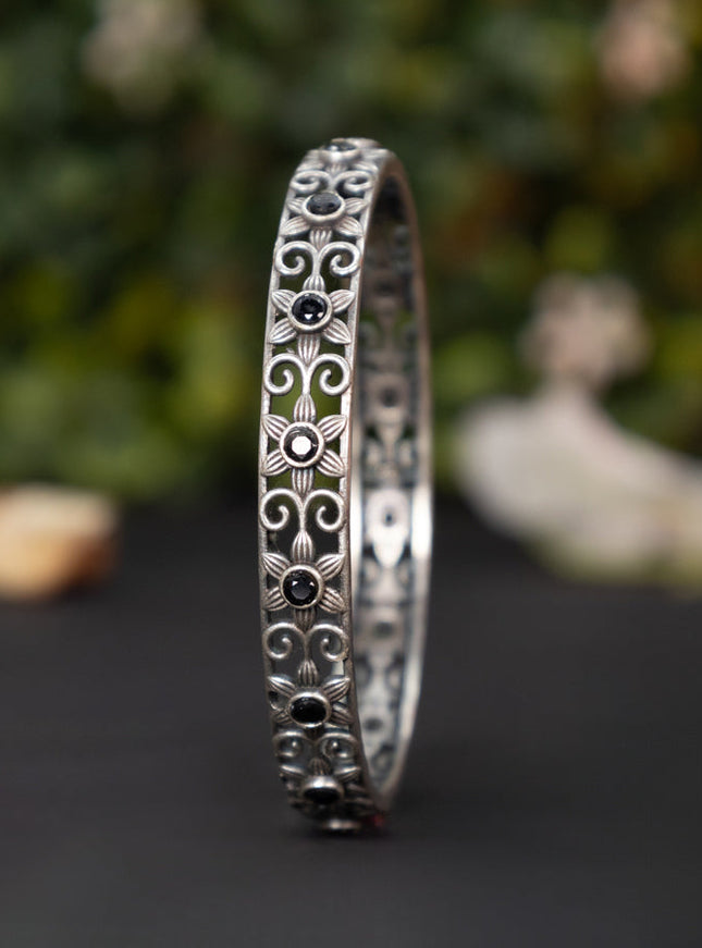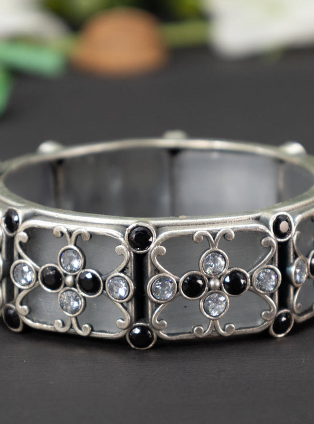 zircon bangle floral design with cz stones