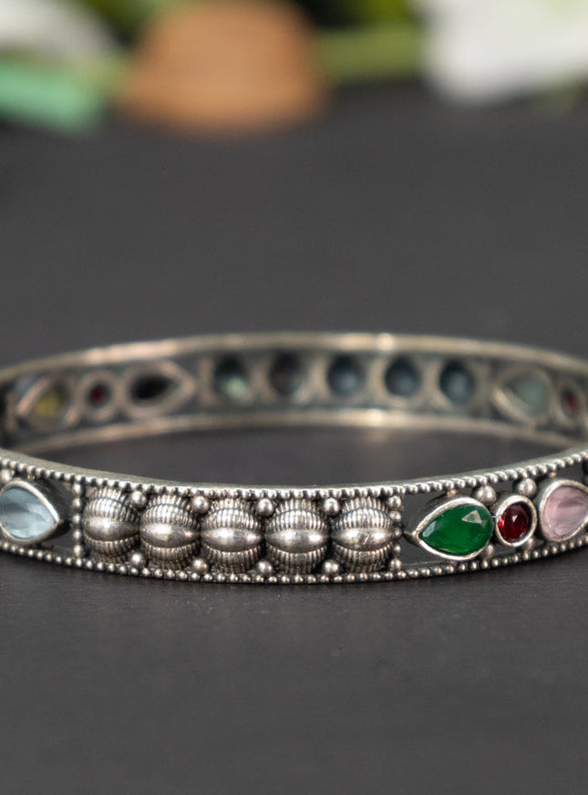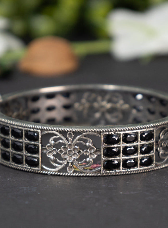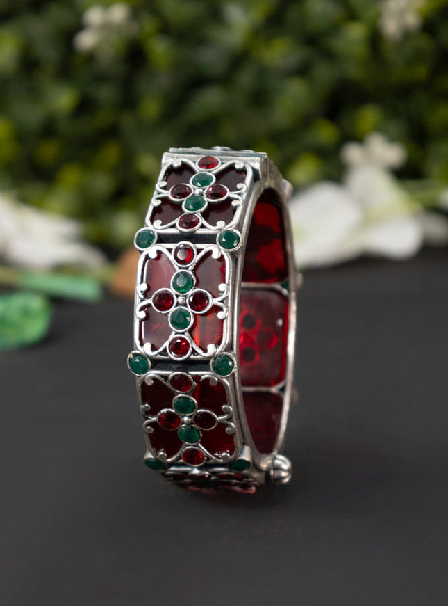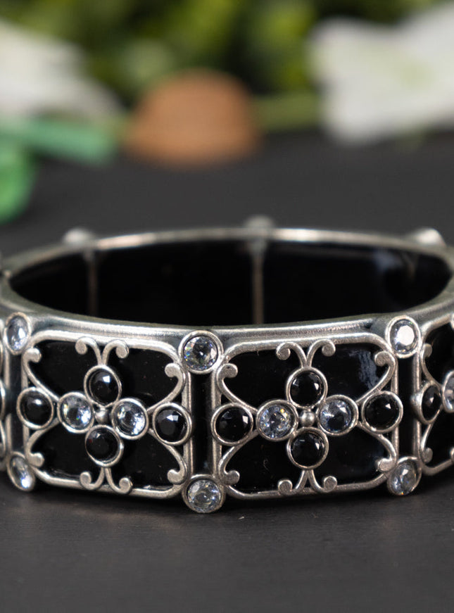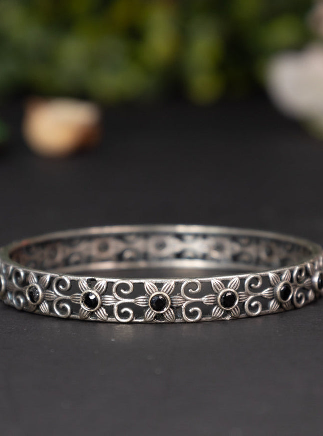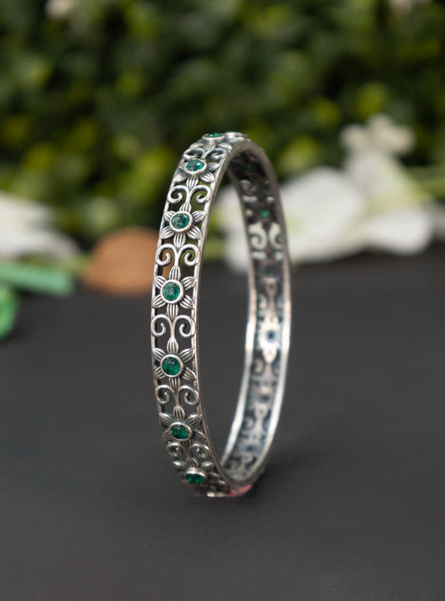 zircon bangle floral design with cz stones