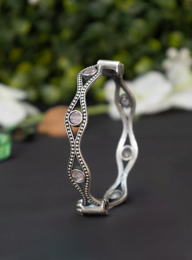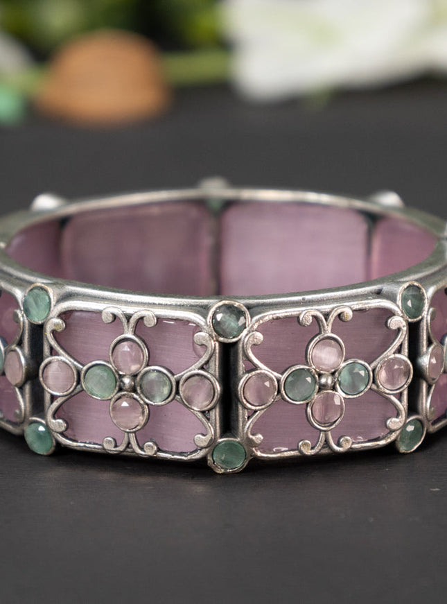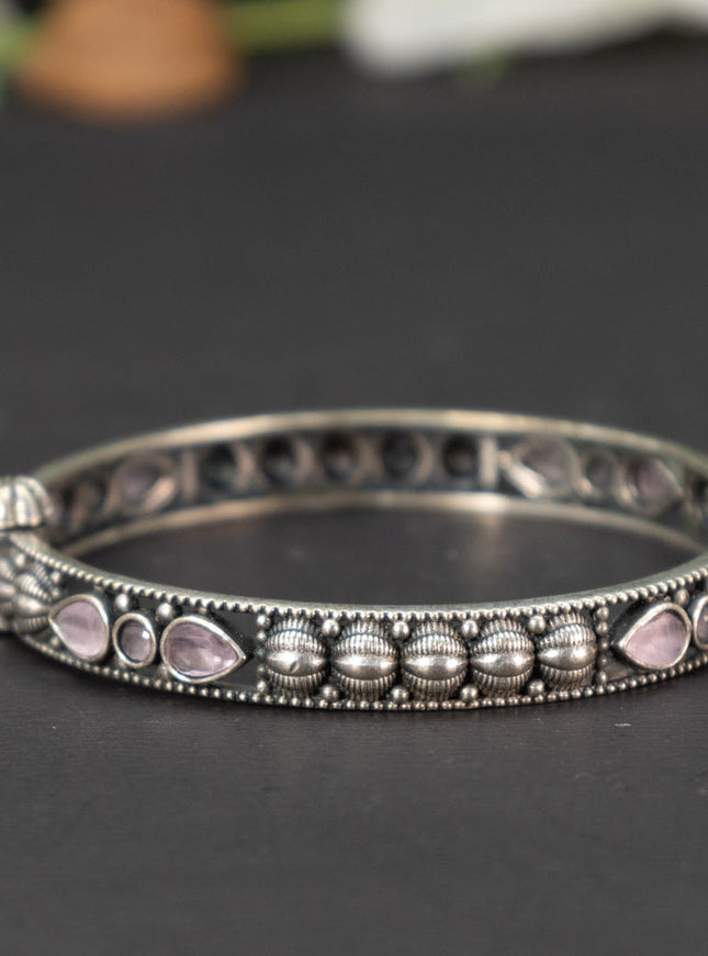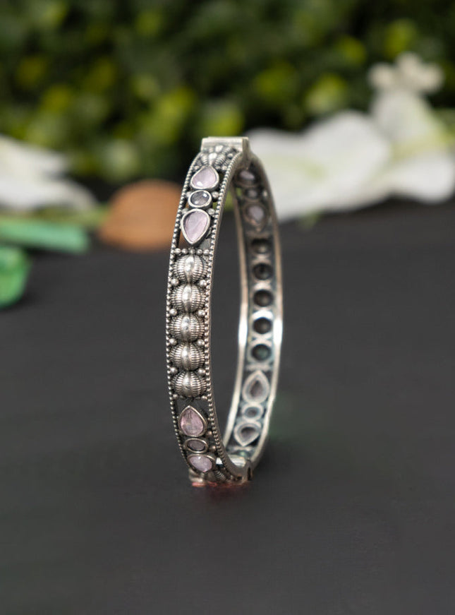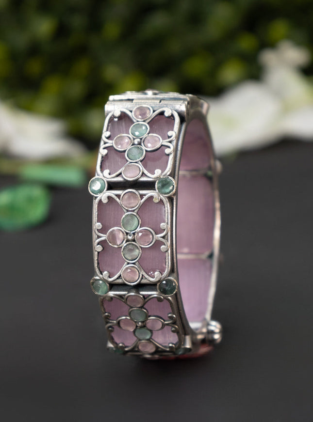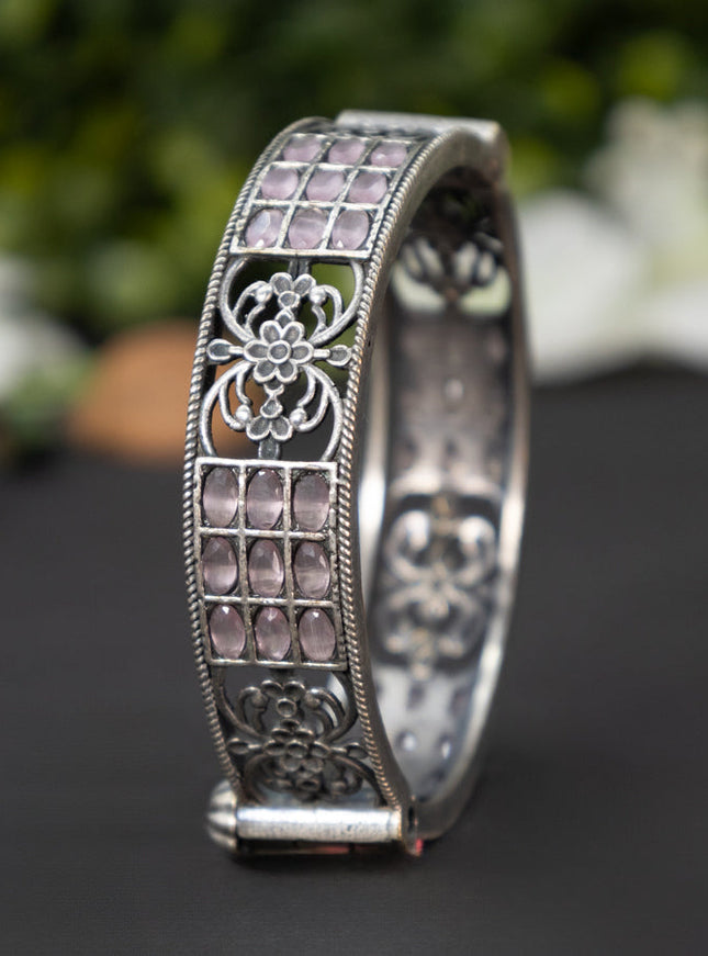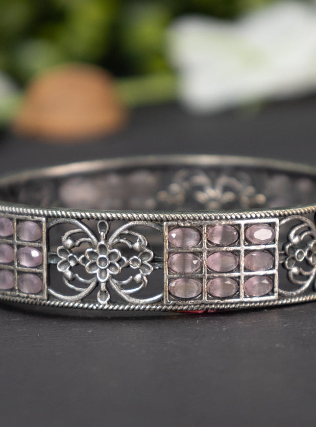 zircon bangle floral design with baby pink and ...