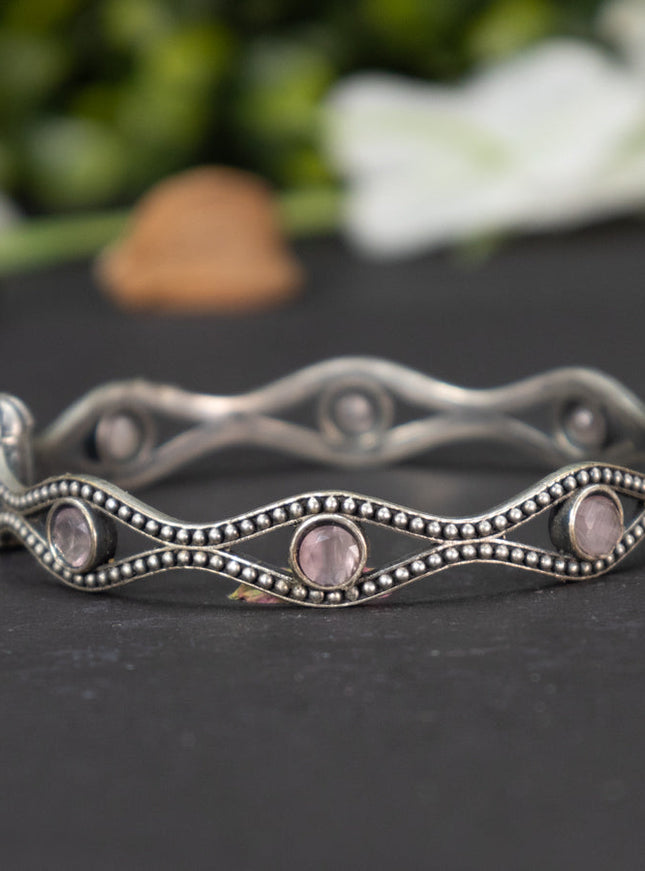 Zircon bangle with baby pink and cz stones